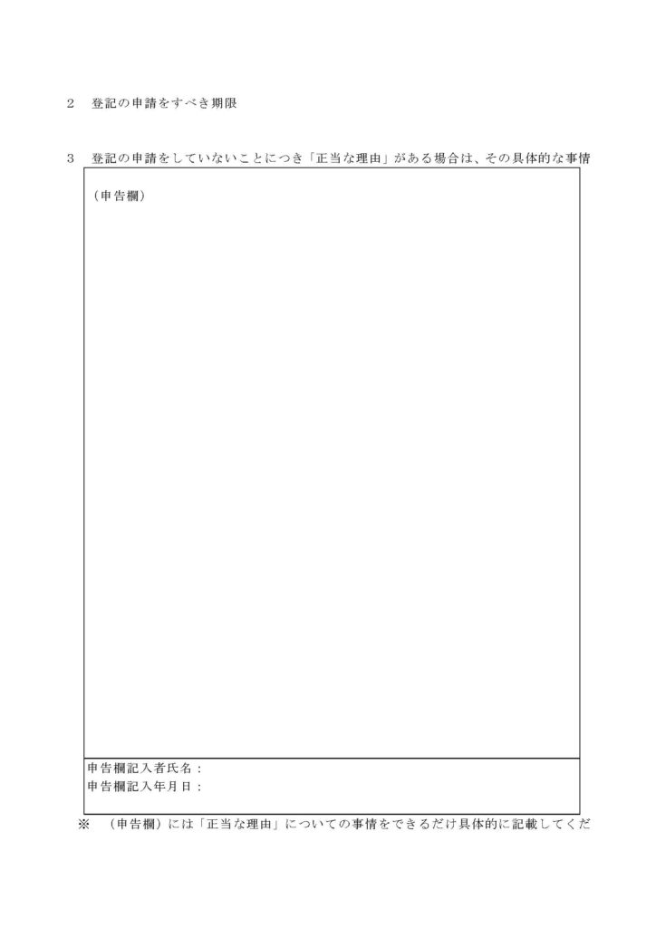 催告書には、住所変更登記をしていないことにつき「正当な理由」がある場合には、それを記載する欄も設けられています。どのような事象が正当な理由として判断されるかは、各事案毎に、登記官が総合的に考慮して、その判断を行います。