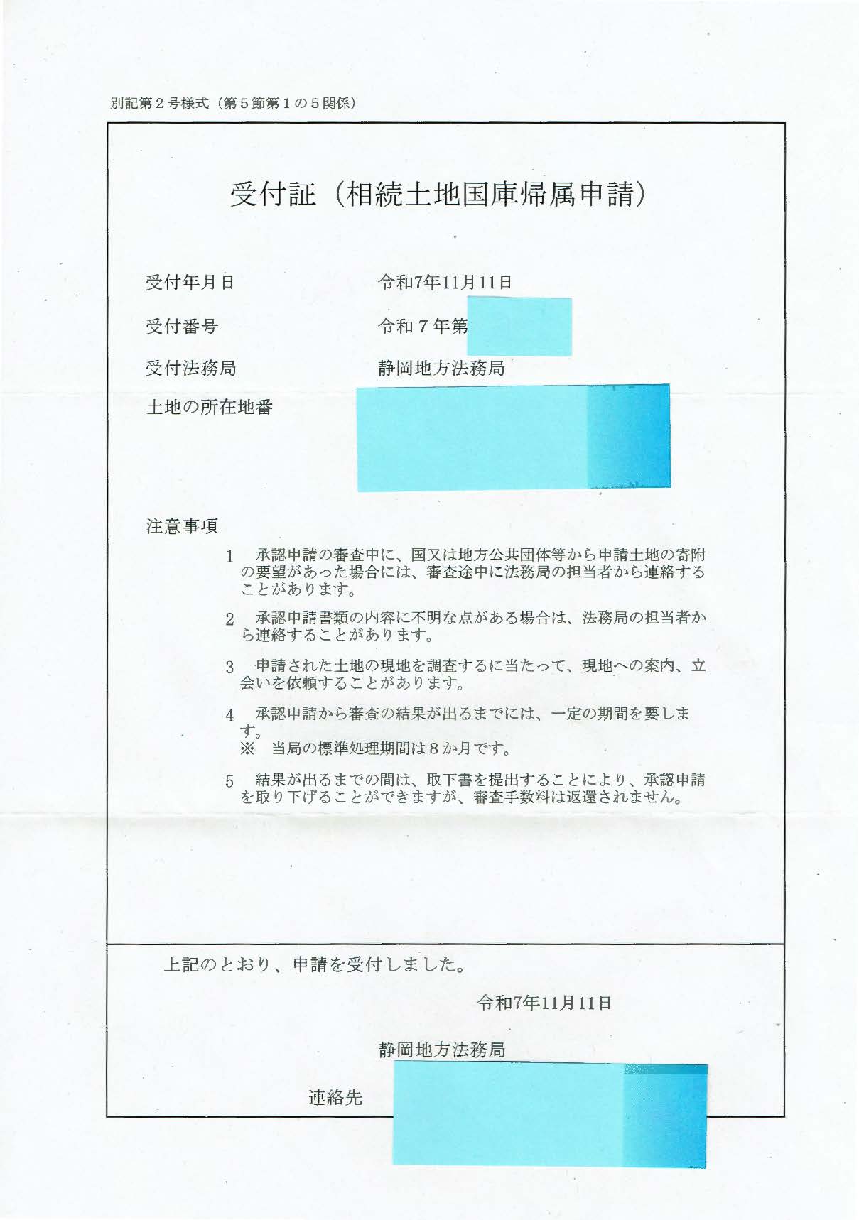相続土地国庫帰属制度受付表